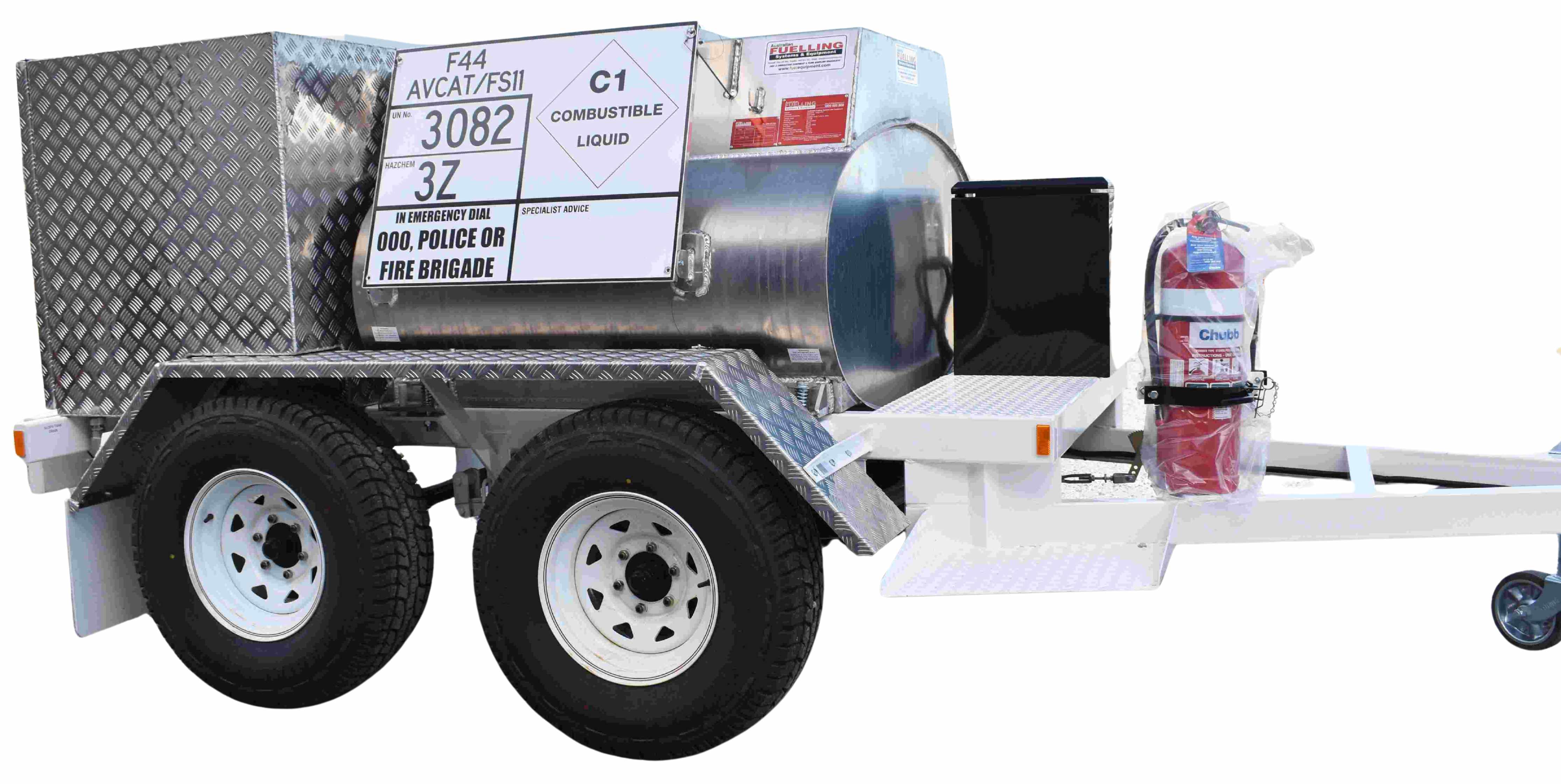 This 1,000 litre trailer is purpose-built for the safe transport and dispensing of AVCAT (JP-5), meeting all requirements for a Dangerous Goods (DG) trailer.